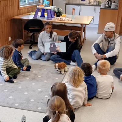 Vi er så heldige å få elever fra Glemmen VG2, barne- og ungdomsfag på besøk 3 ganger nå i høst. Dette er et samarbeid mellom Bokstart prosjektet vi er med i, Glemmen vdg og barnehager i Fredrikstad. Elevene har tatt for seg en bok de skal formidle for barnegruppa. Det kan være høytlesing, dramatisering, sang og dans. Første samling var mandag 06.10. klikk på tittel for å lese mer om dette
