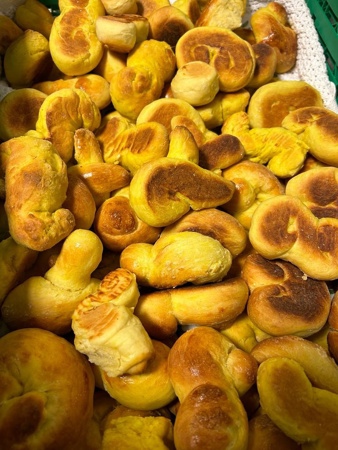 Luciamorgenen ble feiret med kvinner med hvite drakter og lyskranser i håret, og med mat og drikke"