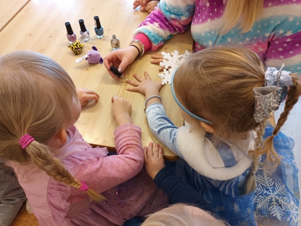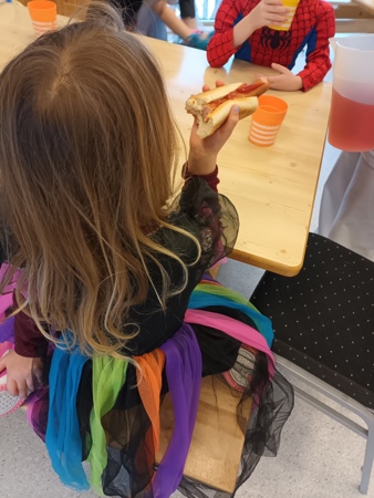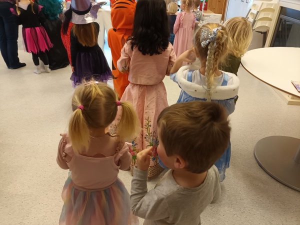 I dag kryr det av prinsesser, dyr, superhelter, glitter, farger og paljetter:-) Karneval står på kalenderen, og stemningen er super! Det er lange spillelister av favorittsanger, det er kø for å få glitter negllakk og det er ballonger overalt :-) Barna har hatt høyt tempo siden de kom inn døra, og det var nok godt for noen og enhver da pølsekiosken ble åpnet. Barna har lagd sine egne penger, var super flinke til å stå i kø, og de fleste var enig i at det var godt med en liten mat pause :-) klikk her for å se flere bilder :-)