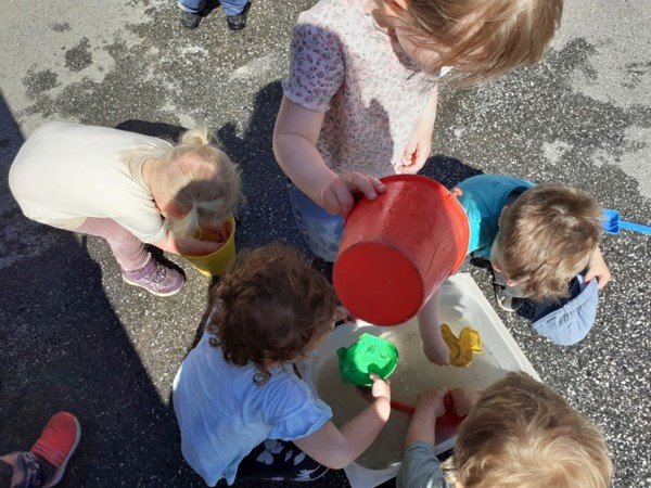 Sola skinner i sin fineste prakt, gradene stiger og både solkrem og parasoller blir flittig brukt ⛱ Barna nyter hele dagen ute, det blir mindre og mindre klesplagg, sokker og sko forsvinner som dugg for solen, og vannlek er helt på sin plass💦 De eldste barna er på tur, mens de andre nyter god lunsj ute i finværet🥪🥒🧀🥤Se her for fler bilder