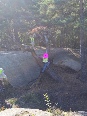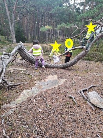 Barna er høyt og lavt, et veltet tre er helt supert som klatrestativ
