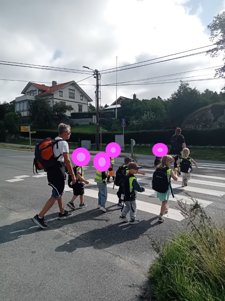 Vi øver mye på trafikk sikkerhet og hvordan vi skal ferdes i og langs trafikken :-)