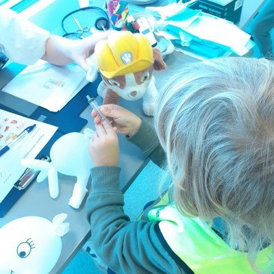 Her er vi på Bamsesykehuset. studenter fra sykepleiehøgskolen har lagd et kjempe fint opplegg hvor barna fikk god innsikt i hva som skjer på et sykehus dersom vi blir syke. Barna hadde med seg egne bamser som fikk både blodprøver, plaster, røntgen, ble lyttet på, tatt blodtrykk mm. Heldigvis var alle kosedyrene friske og raske da vi dro tilbake til barnehagen.