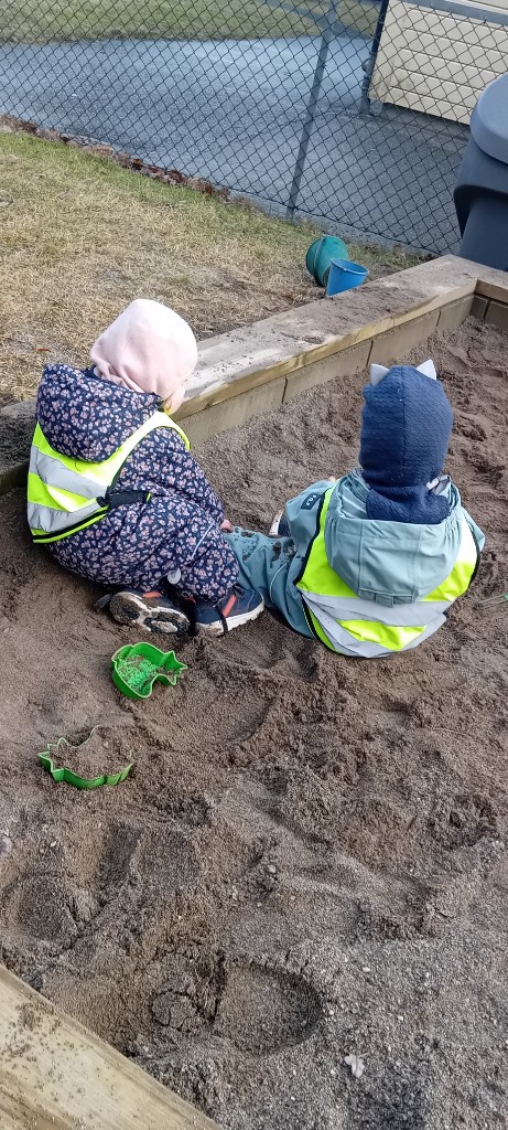 Torsdag 19.03.26 viste seg fra sin aller beste side. Solen var fremme, lite vind og snøen borte! De minste barna koset seg med mye fin lek på uteområdet. I alderen 0-2 år er det utrolig mye som skal læres, utforskes, utvikles og oppleves. Bare det å bevege seg ute med store sko, dress, votter de aller helst ikke vil ha på og en lue som titt og ofte sklir litt nedover og litt sidelengs, byr på masse trening, latter og ikke minst frustrasjon😀 Lekeapparatene er spennende, sandkassa må utforskes og akesklia er super spennende, og for noen veldig skummel. klikk på tittel for å se bilder