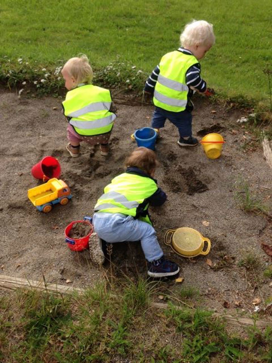 De minste barna på rød og blå avdeling (0-2 år) koser seg på tur så ofte de kan. Det er ikke alltid de går så lang, men opplevelsene er mange og store for de minste.