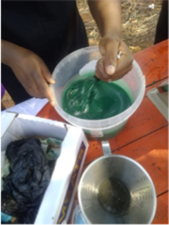 Pamela lager såpe som hun selger. Her står de i kø for å kjøpe av henne.